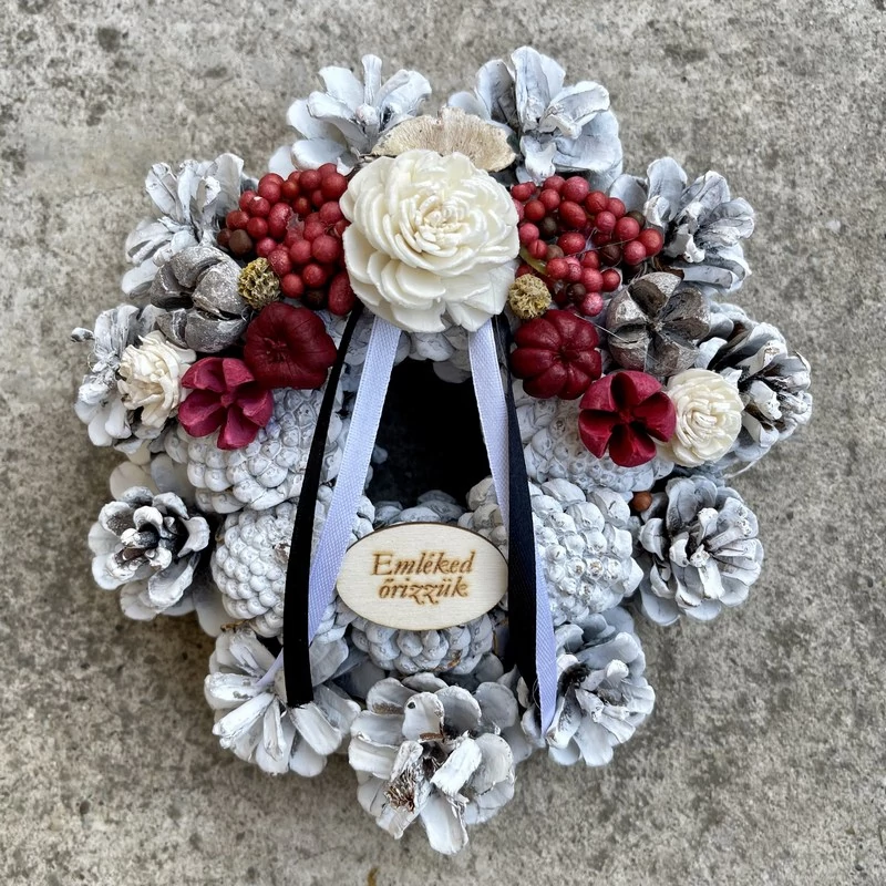 Saját készítésű temetői sírdíszek kedvező áron, minőségi szárított és selyemvirágokból.