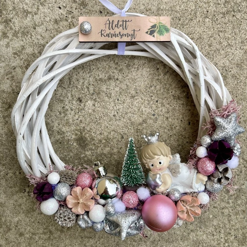 Adventi kopogtató 010 - 20 cm átmérőjű, fehér vesszőkoszorú