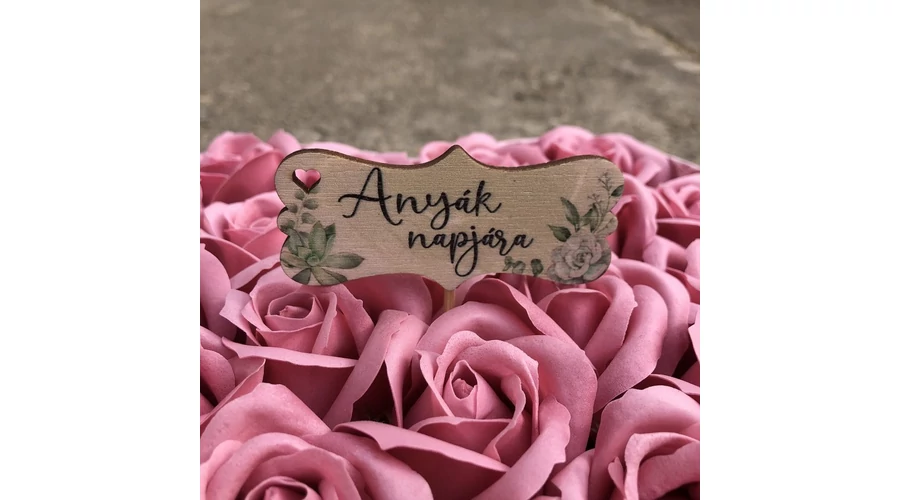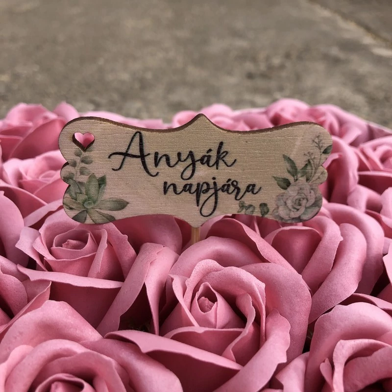 Egyedi, lézervágott felirat, mellyel kiegészítheti az ajándékát! A felirat hurkapálcára van ragasztva, azzal könnyen oda szúrható, ahol Önnek a legjobban tetszik!