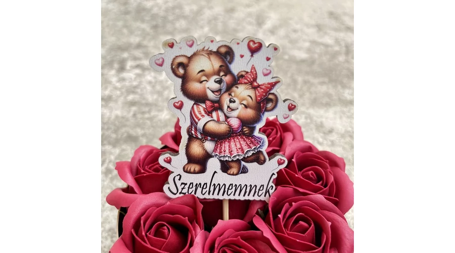 Egyedi, lézervágott felirat, mellyel kiegészítheti az ajándékát! A felirat hurkapálcára van ragasztva, azzal könnyen oda szúrható, ahol Önnek a legjobban tetszik!