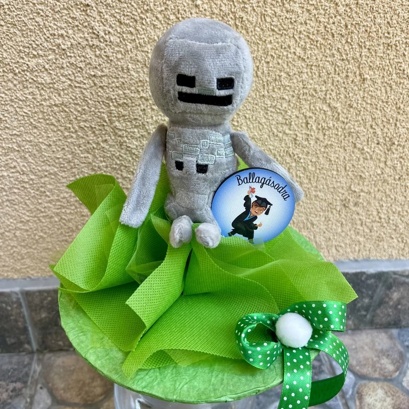 Ballagási közepes csokor, szürke Minecraft plüssel - zöld