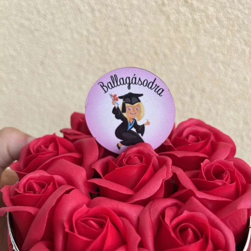 Egyedi, lézervágott felirat, mellyel kiegészítheti az ajándékát! A felirat hurkapálcára van ragasztva, azzal könnyen oda szúrható, ahol Önnek a legjobban tetszik!