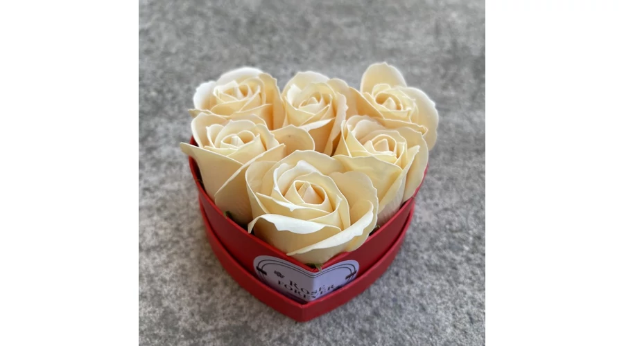 Barack szappanrózsák, szív alakú, piros rózsaboxban