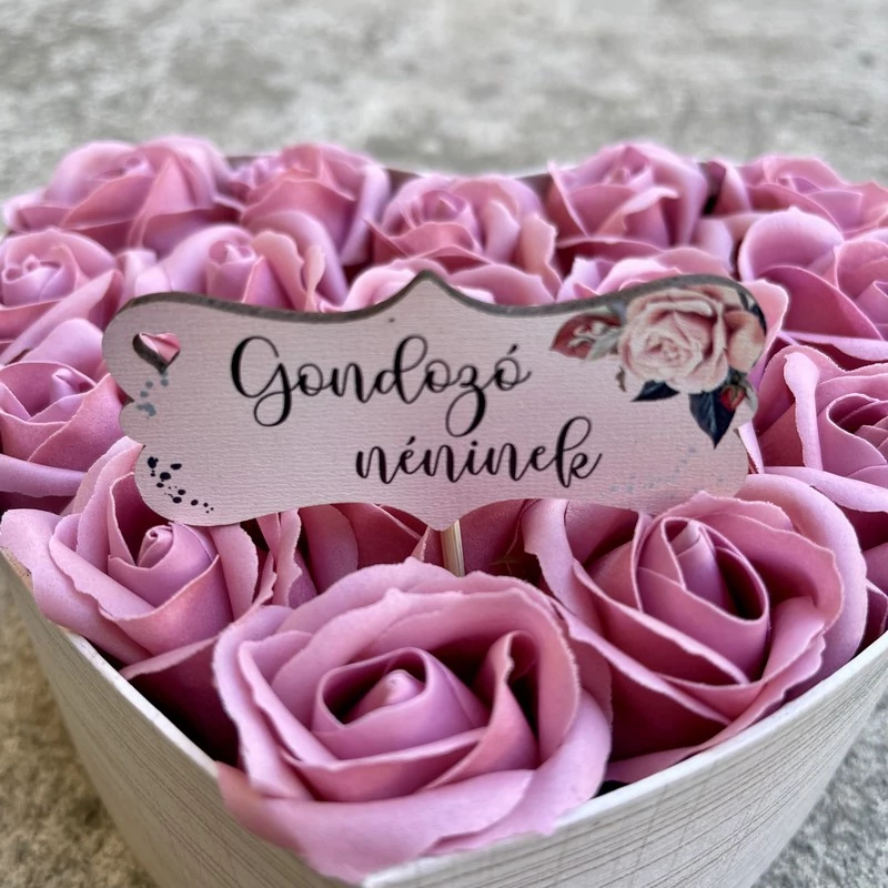 FONTOS! Amennyiben Ön nem személyesen veszi át a virágboxát, hanem a kiszállítást választja, a biztonságos szállítás érdekében a feliratot Ön nem a rózsa boxba szúrva kapja meg, hanem külön, gondosan becsomagolva és Önnek kell majd beleszúrni a boxba!