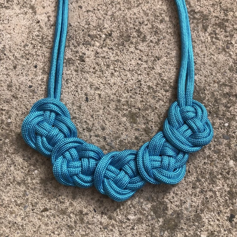 Egyedi, paracord zsinórból készült csomózott nyaklánc.