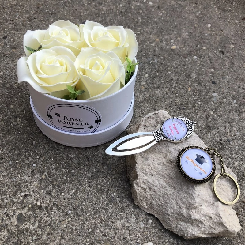 Év végi ajándékcsomag 003 - mini krém kerek rózsabox, választható könyvjelzővel VAGY kulcstartóval