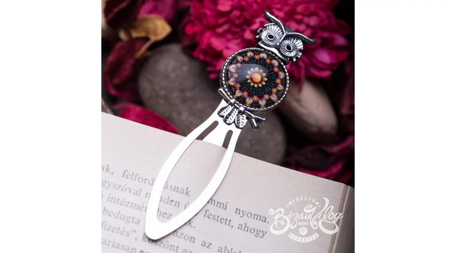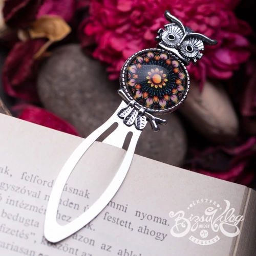 Fekete mandalás baglyos könyvjelző