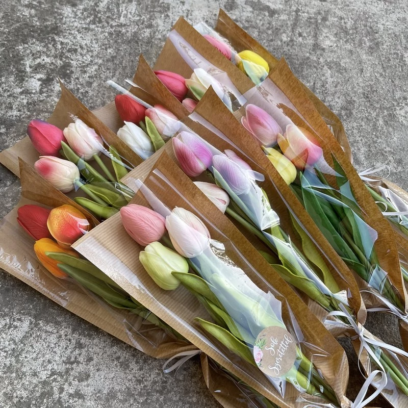 Tökéletesen élethű gumitulipánok hármasával csomagolva: tökéletes ajándék minden alkalomra, ha valami aprósággal szeretné meglepni szeretteit, ismerőseit, barátait. Ezek a mű tulipánok a megszólalásig hasonlítanak az igazira, de mégsem hervadnak el néhány nap alatt.