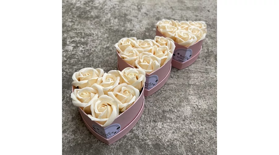 Hármas csomagajánlat - 3 db barack rózsabox, rózsaszín, szív alakú, dobozban