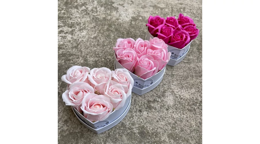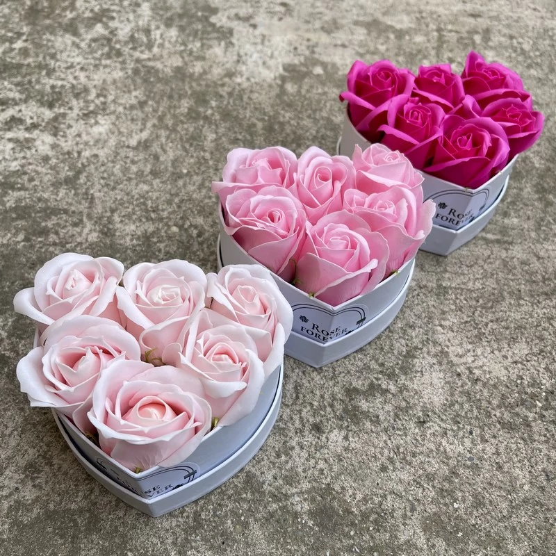 Hármas csomagajánlat - 3 db rózsaszín rózsabox, fehér, szív alakú, dobozban