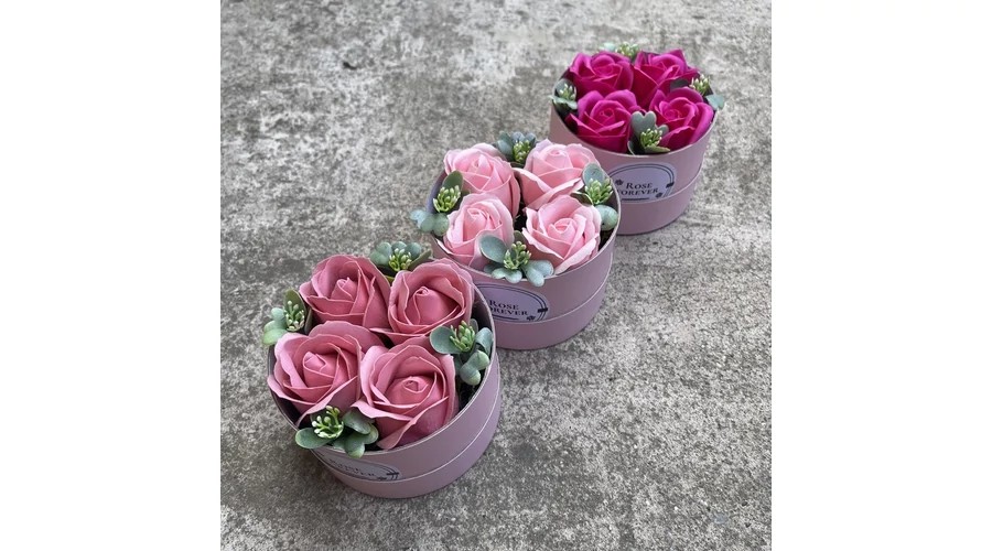 Hármas csomagajánlat - 3 db rózsaszín rózsabox, rózsaszín, kerek, dobozban