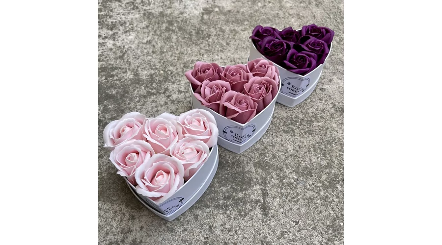 Hármas csomagajánlat - 3 db púder lila rózsabox, fehér, szív alakú, dobozban