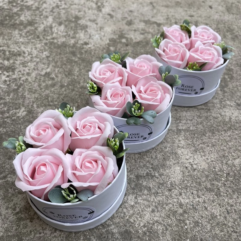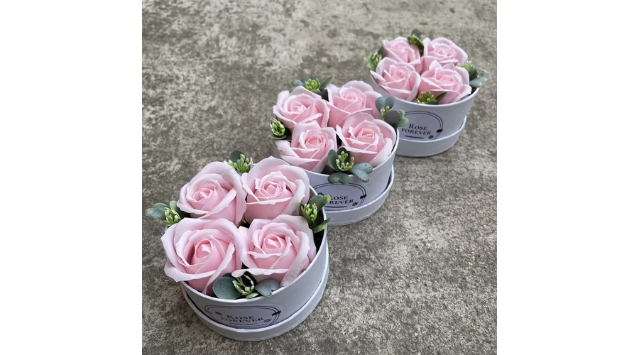 Hármas csomagajánlat - 3 db halvány rózsaszín rózsabox, fehér, kerek, dobozban