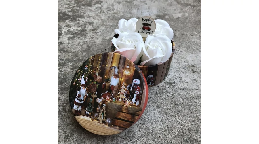 Saját készítésű, különleges karácsonyi rózsabox, mely igazán különleges meglepetés lehet a fa alatt. Az exkluzív minőségű, szappanrózsákból készült, ünnepi rózsabox egyedisége nem csupán abban rejlik, hogy teljesen élethű, de még illatos is!