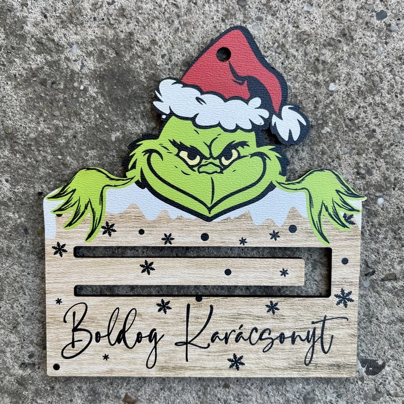 Egyedi, lézervágott felirat, mellyel kiegészítheti a karácsonyi ajándékát! Adja át pénzbeli ajándékot, a táblára tekerve, stílusosan!