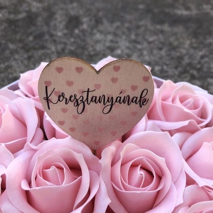 FONTOS! Amennyiben Ön nem személyesen veszi át a virágboxát, hanem a kiszállítást választja, a biztonságos szállítás érdekében a feliratot Ön nem a rózsa boxba szúrva kapja meg, hanem külön, gondosan becsomagolva és Önnek kell majd beleszúrni a boxba!