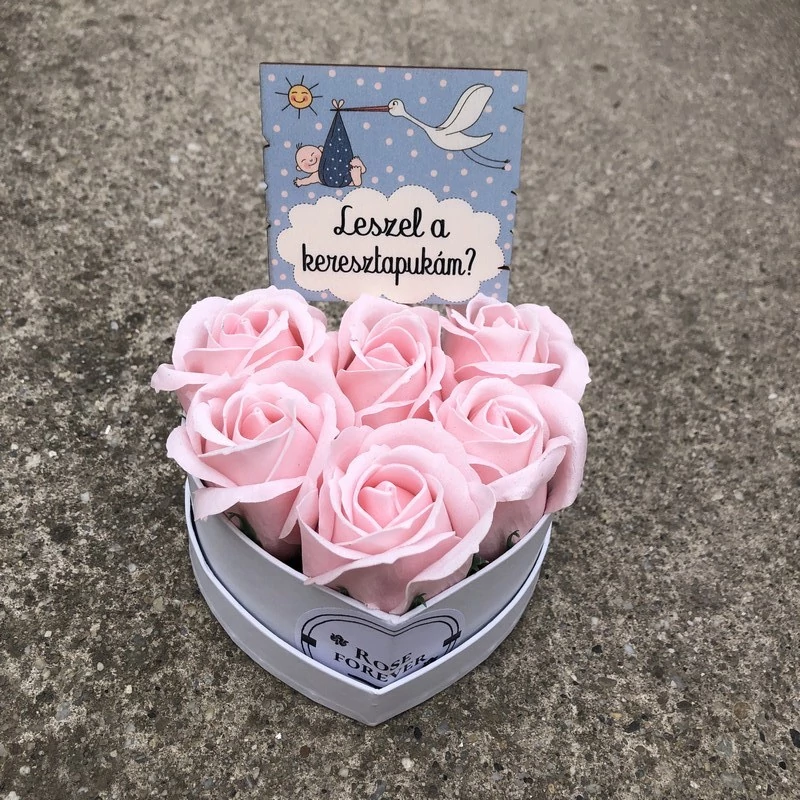 Exkluzív minőségű, szappanrózsákból készült rózsabox, mely egyedisége nem csupán abban rejlik, hogy teljesen élethű, de még illatos is! Remek választás, ha maradandó ajándékkal szeretnéd felkérni gyermeked leendő keresztapukáját!