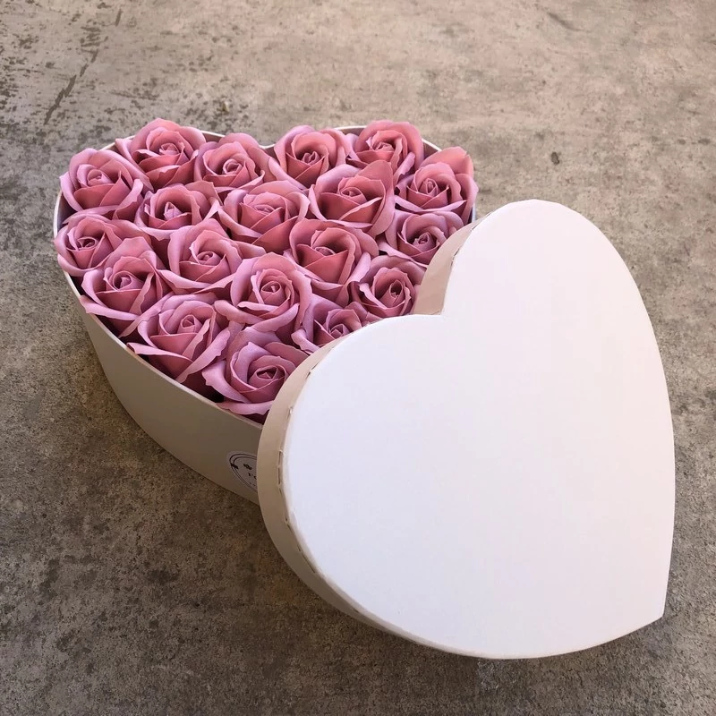 - Rózsa box méretei: 22 cm széles, 22 cm hosszú, 9 cm magas, szív alapú