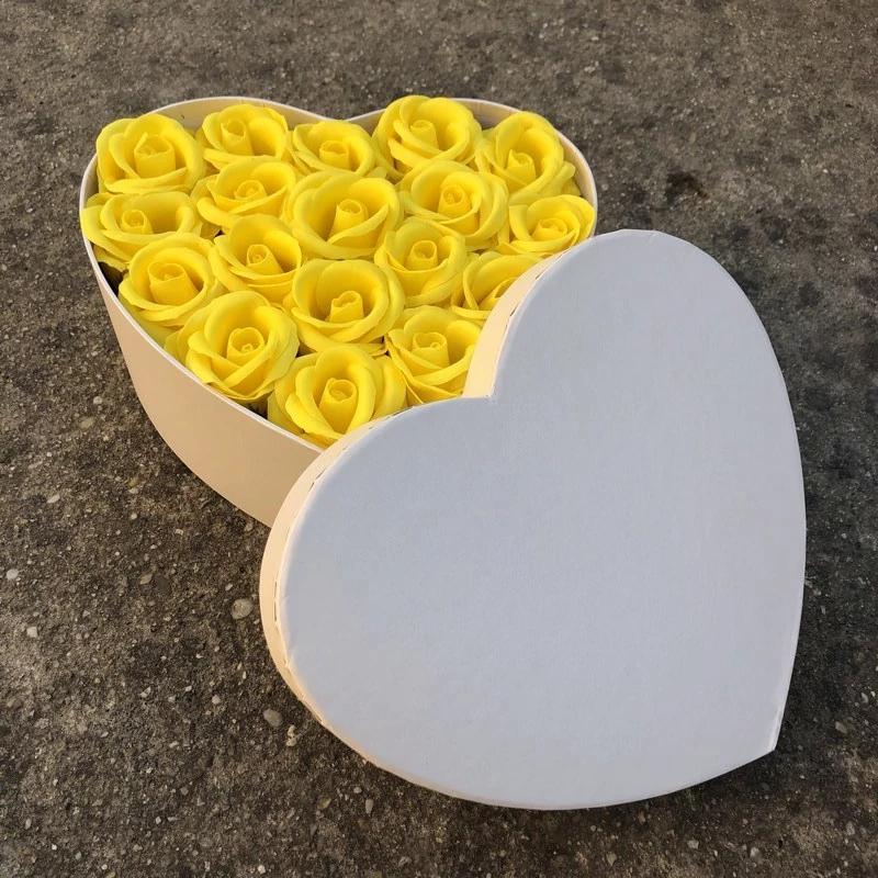 Krém, nagy, szív alakú, sárga rózsa box