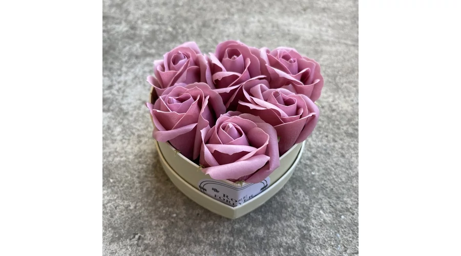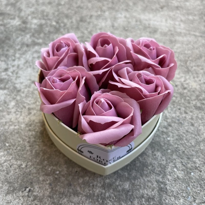 Mályva szappanrózsák, szív alakú, krémszínű rózsaboxban