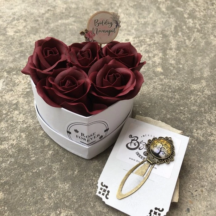1. Egy exkluzív minőségű, szappanrózsákból készült rózsaboxot, melyek egyedisége nem csupán abban rejlik, hogy teljesen élethűek, de még illatosak is! Igazán tartós és dekoratív része lehet a megajándékozott otthonának!