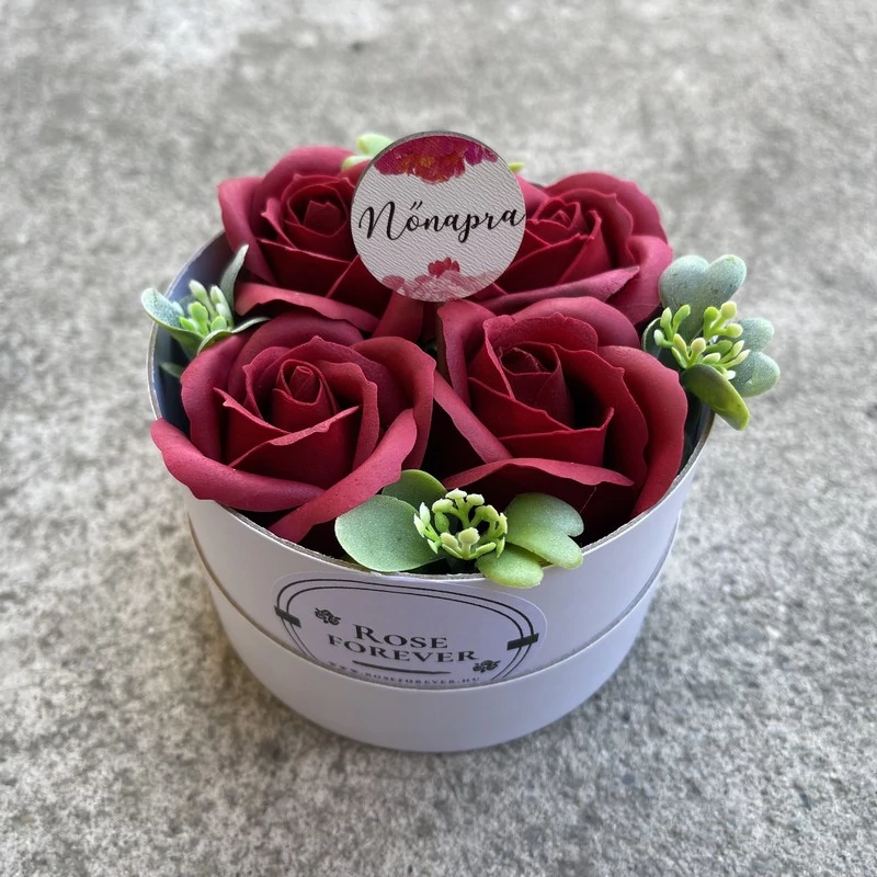 Exkluzív minőségű, szappanrózsákból készült, nőnapi ajándék rózsabox, mely egyedisége nem csupán abban rejlik, hogy teljesen élethű, de még illatos is! Az új generációs "művirágok" megszólalásig hasonlítanak az igazira, de mégsem hervadnak el, így igazán tartós és dekoratív része lehet a megajándékozott otthonának!