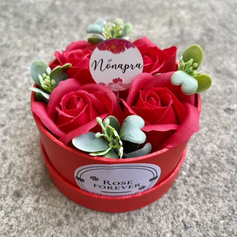 Exkluzív minőségű, szappanrózsákból készült, nőnapi ajándék rózsabox, mely egyedisége nem csupán abban rejlik, hogy teljesen élethű, de még illatos is! Az új generációs "művirágok" megszólalásig hasonlítanak az igazira, de mégsem hervadnak el, így igazán tartós és dekoratív része lehet a megajándékozott otthonának!