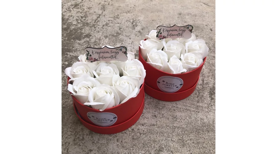 Exkluzív minőségű, szappanrózsákból készült köszönetajándék örömanyáknak, mely egyedisége nem csupán abban rejlik, hogy teljesen élethű, de még illatos is! Az új generációs "művirágok" megszólalásig hasonlítanak az igazira, de mégsem hervadnak el, így igazán tartós és dekoratív része lehet a megajándékozott otthonának!