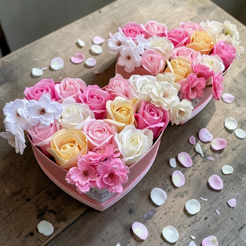 Exkluzív minőségű, a piacon újdonságnak számító, szappanrózsákkal, szappanhortenziával és szappanból készült cseresznyevirágokkal tűzdelt, saját készítésű rózsa box. Az új generációs "művirágok" megszólalásig hasonlítanak az igazira, de mégsem hervadnak el, így igazán tartós és dekoratív része lehet a megajándékozott otthonának!