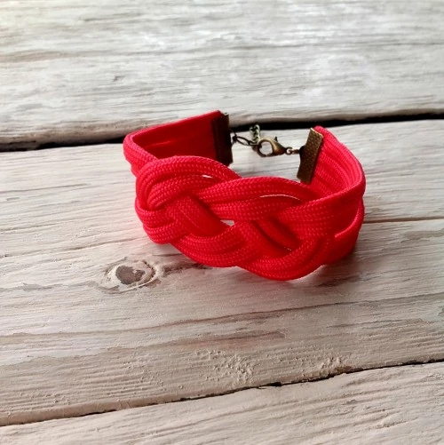 Egyedi, paracord zsinórból készült csomózott karkötő.