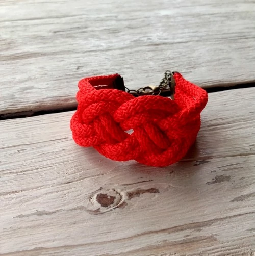 Egyedi, paracord zsinórból készült csomózott karkötő.