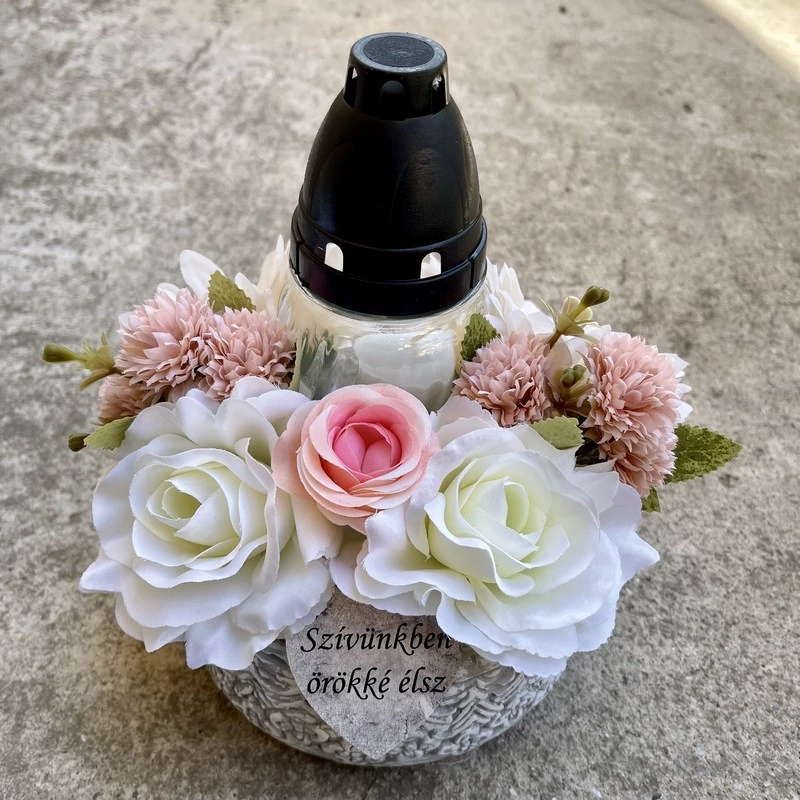Saját készítésű temetői sírdíszek kedvező áron, minőségi szárított és selyemvirágokból.