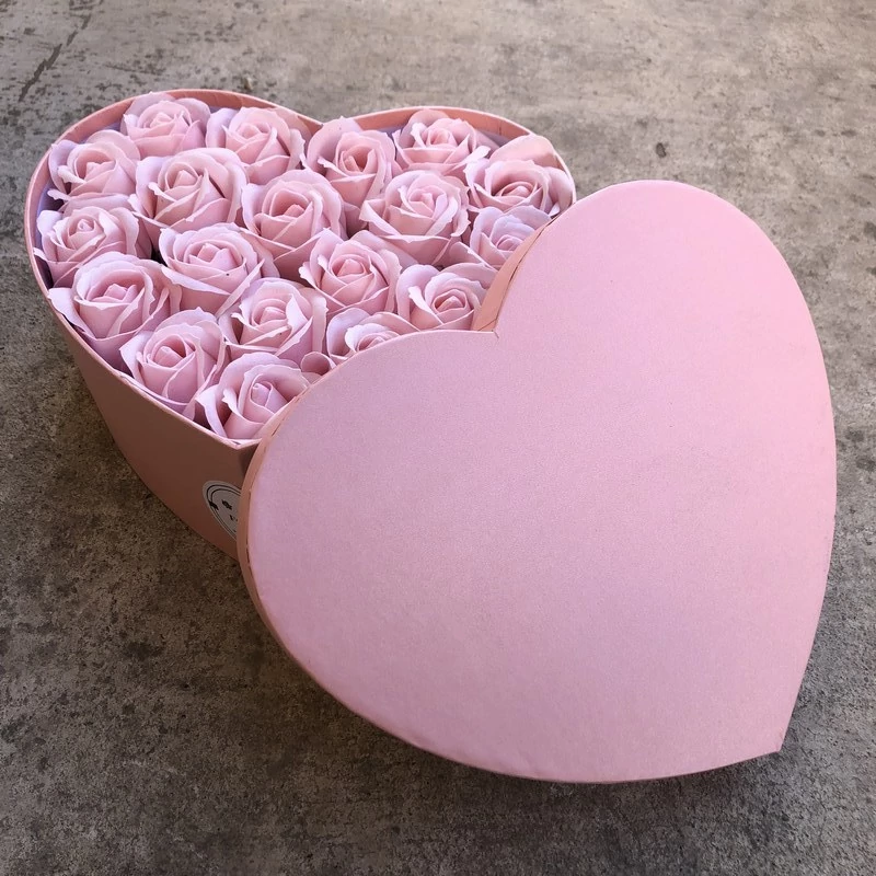 Rózsaszín, nagy, szív alakú, halvány rózsaszín rózsa box