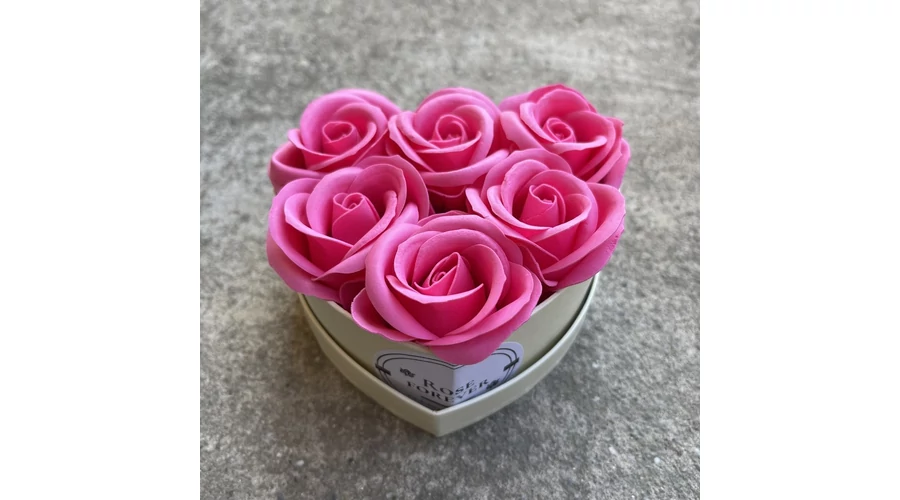 Sötét pink szappanrózsák, szív alakú, krém rózsaboxban