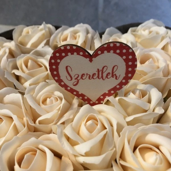 Méretei: 6 cm széles, 5 cm magas, szív alakú