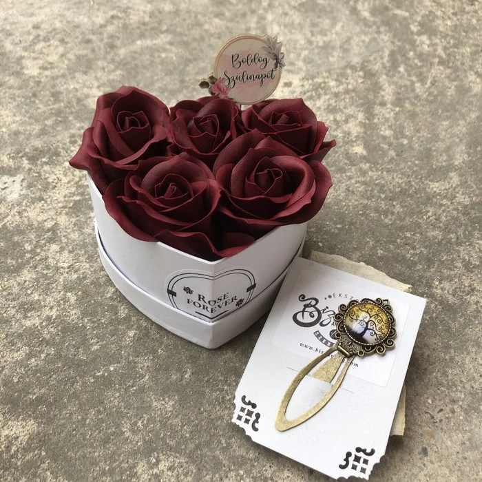 1. Egy exkluzív minőségű, szappanrózsákból készült rózsaboxot, melyek egyedisége nem csupán abban rejlik, hogy teljesen élethűek, de még illatosak is! Igazán tartós és dekoratív része lehet a megajándékozott otthonának!