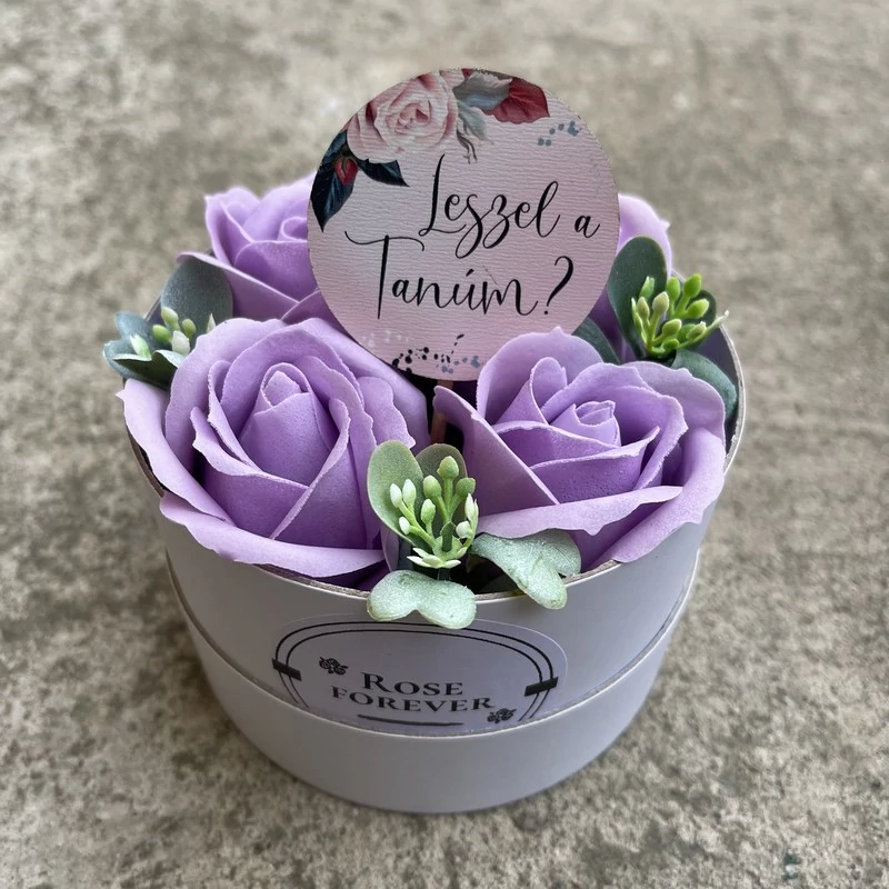 Exkluzív minőségű, szappanrózsákból készült rózsabox, mely egyedisége nem csupán abban rejlik, hogy teljesen élethű, de még illatos is! Remek választás, ha maradandó ajándékkal szeretnéd felkérni tanúdat, hogy legyen Veled a nagy napon!