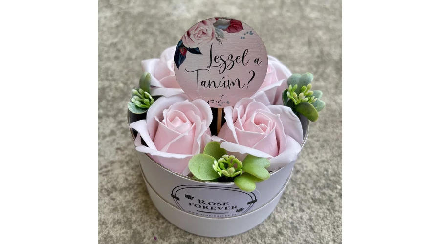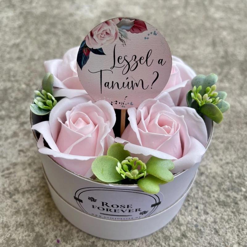 Exkluzív minőségű, szappanrózsákból készült rózsabox, mely egyedisége nem csupán abban rejlik, hogy teljesen élethű, de még illatos is! Remek választás, ha maradandó ajándékkal szeretnéd felkérni tanúdat, hogy legyen Veled a nagy napon!
